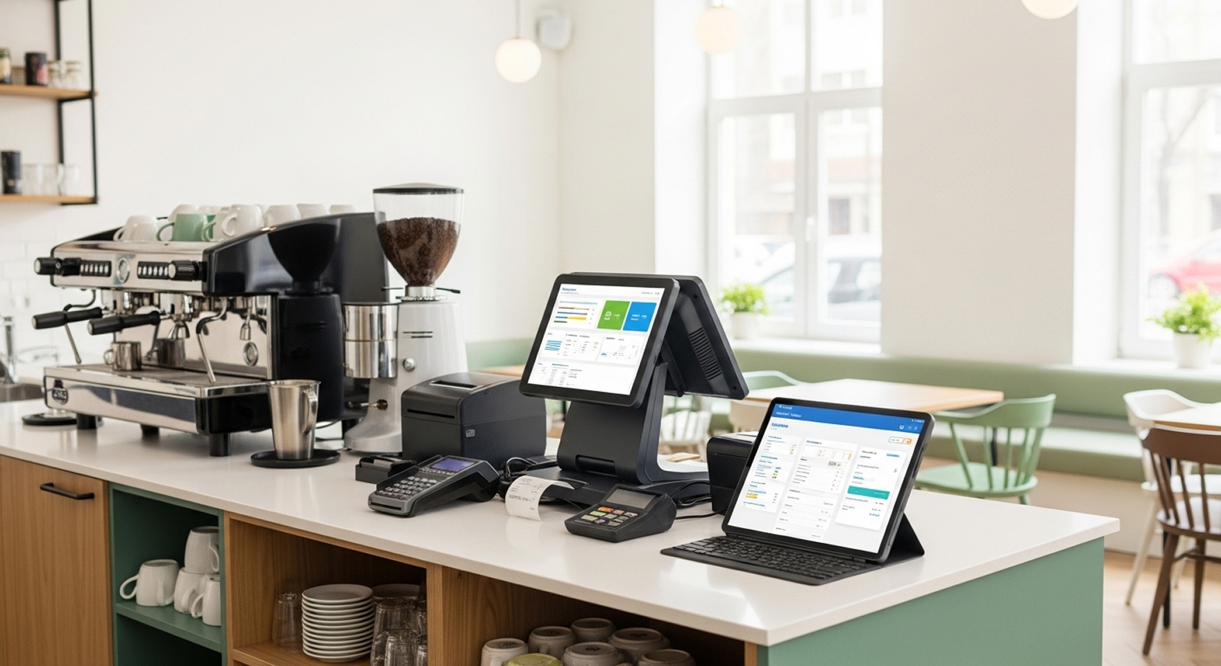 Needed equipment selection depends on work specifics. Takeaway coffee shop manages with basic cash register and receipt printer, cafe with hall requires waiter tablets, kitchen KDS screens, card payment terminals. Cloud POS system works on any devices including ready solutions and regular tablets.